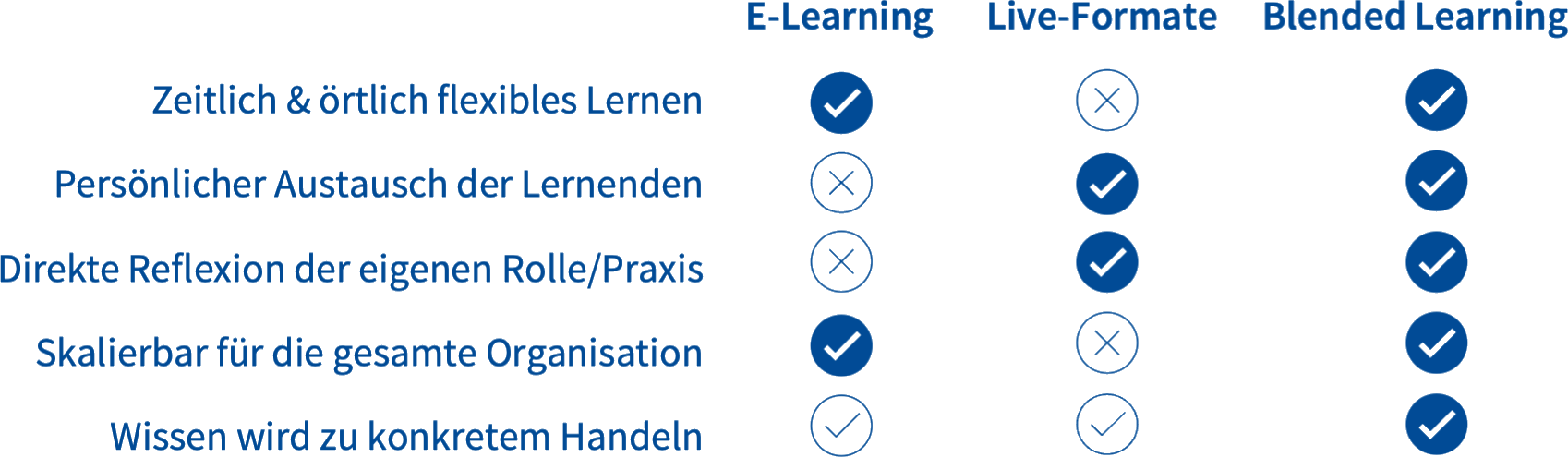 Live-Formate (on-/offline) ergänzen E-Learning für ein bestmögliches Lernergebnis